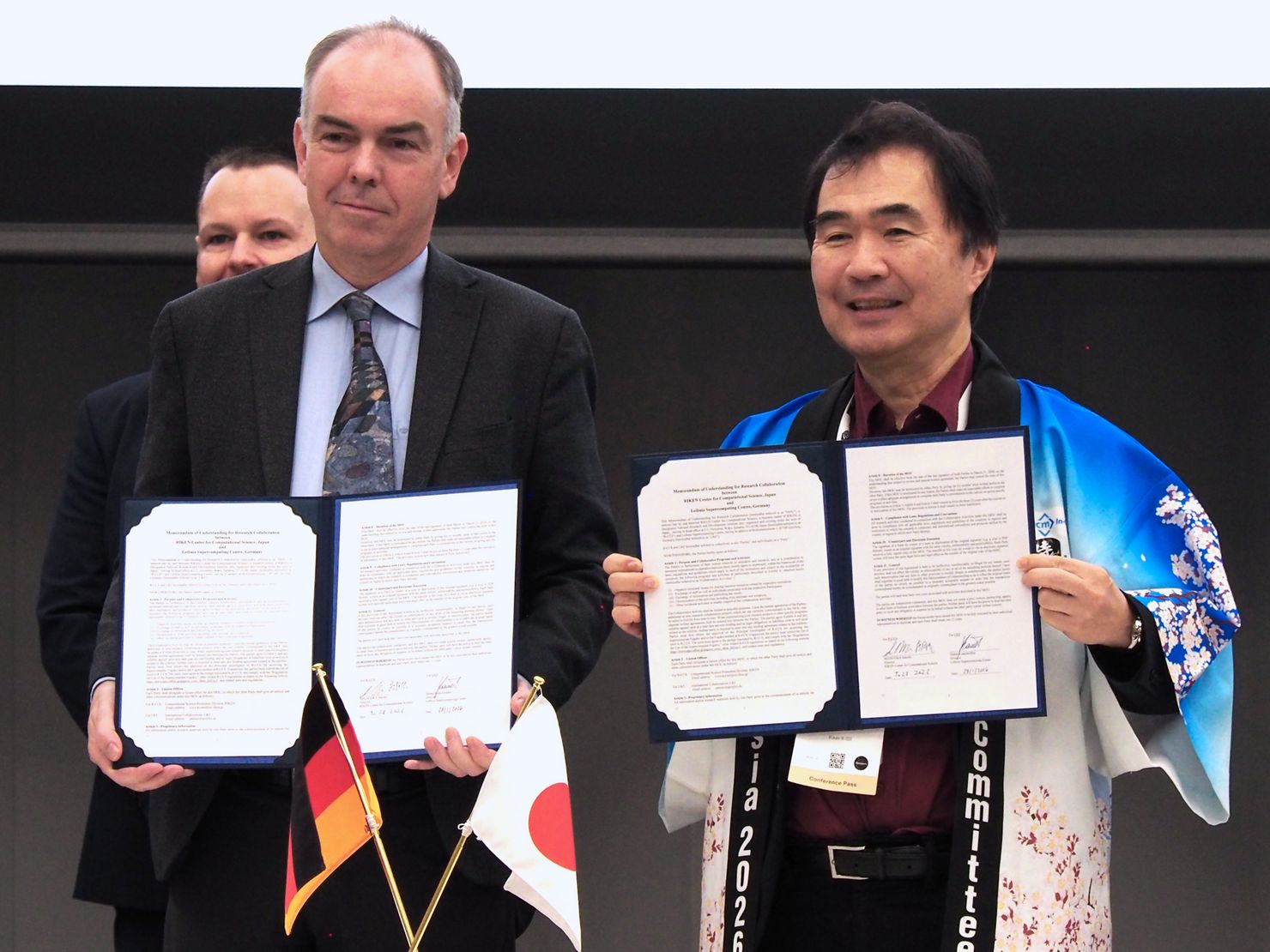 Supercomputers are extremely energy-hungry, and high-performance computing (HPC) centers like the RIKEN Center for Computational Science (R-CCS) and the Leibniz Supercomputing Centre (LRZ) rely on direct water cooling to lower the energy costs for their high-performance systems. Compared to air cooling, this method is significantly more economical, and the waste heat from the systems can be used to heat nearby offices and buildings. Now, both computing centres are pooling their expertise to ensure the energy and resource-efficient operation of their next-generation supercomputers. During SC Asia in Osaka, Prof. Satoshi Matsuoka, Director of the RIKEN Center for Computational Science, and Prof. Dieter Kranzlmüller, Chairman of the LRZ's Board of Directors, signed a memorandum of understanding (MoU) to support these goals.